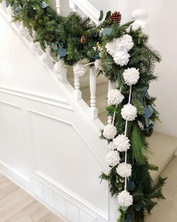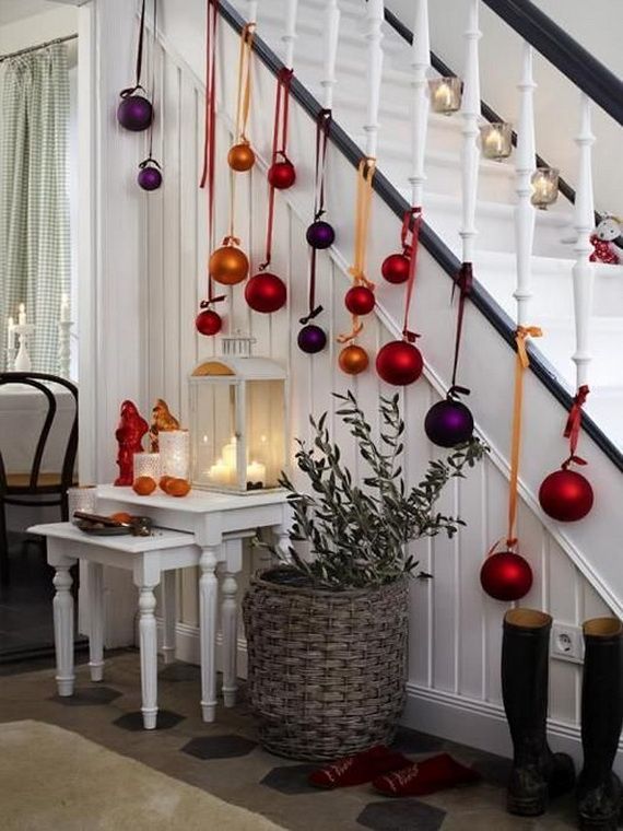 There are a lot of ways to make your staircase more festive ready for Christmas. The most common Christmas decorations used to decorate stairs are: candles and Christmas garland, Christmas lights, Christmas ornaments, wreaths, balls, Jingle Bells, and ribbons all in bright colors, snowflakes, socks, and pine cones.