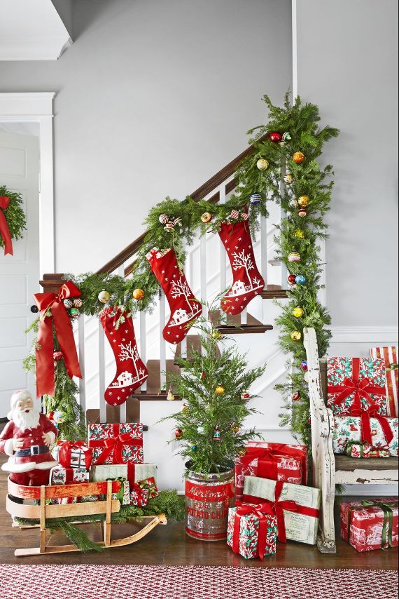 Christmas stairs decoration can add some extra cheer to your home’s decorations and surprise all those who visit you during those days with festive spirit. Depending on the type of house you have, whether the staircase is the first thing people see when they enter your home, or it’s tucked away inside the house, they should be decorated depending on your tastes to achieve a complete Christmas decoration…the railing and the steps.