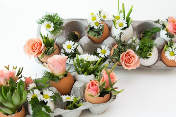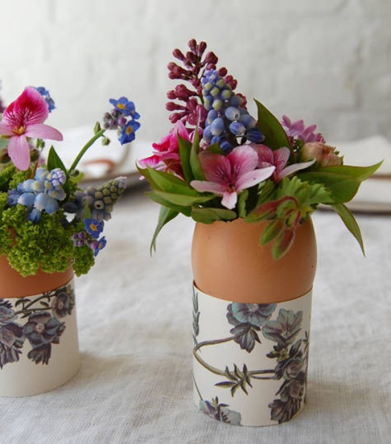 Using Fresh flowers on Easter eggs as decorations are so simple and so pretty. They sure add some sparkle to your Easter this year. Eggs are transformed into a totally new table centerpiece.
