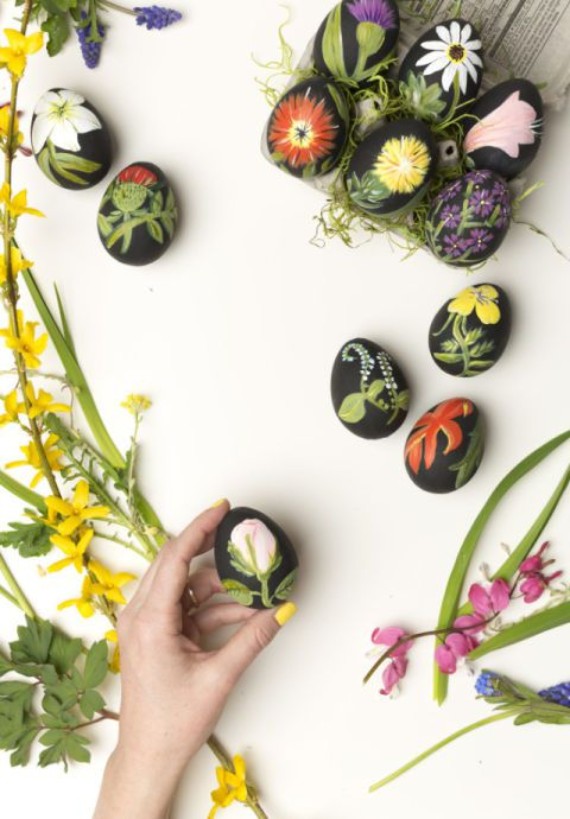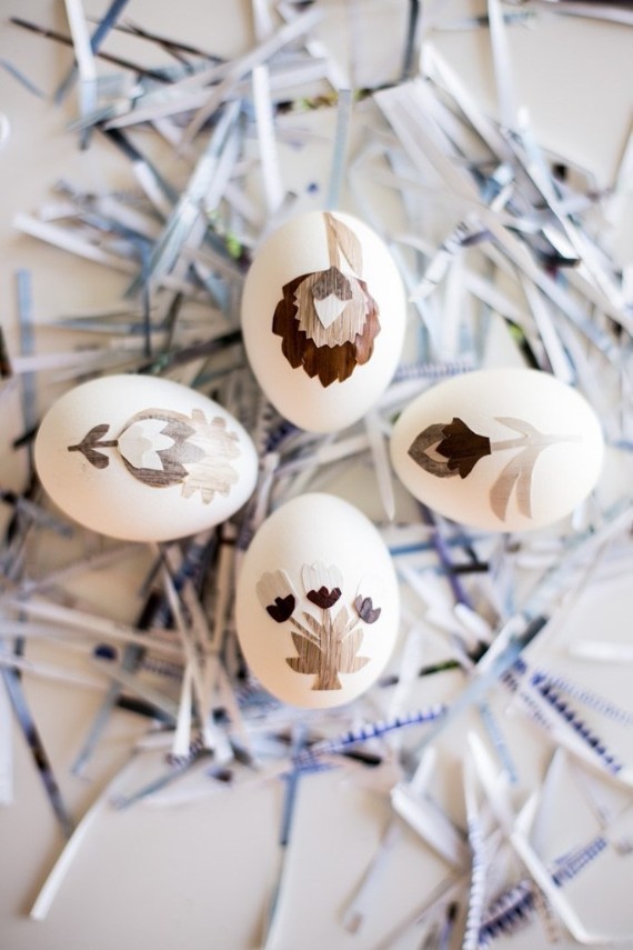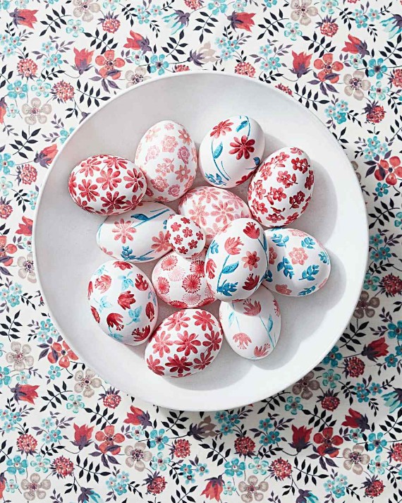 Floral pattern are simple to create. Simple stamping technique is used widely in egg decorations. the supplies is already in your house. All you need is tiny rubber stamps, your favorite chalk ink pad, and a steady hand to create floral Easter eggs.