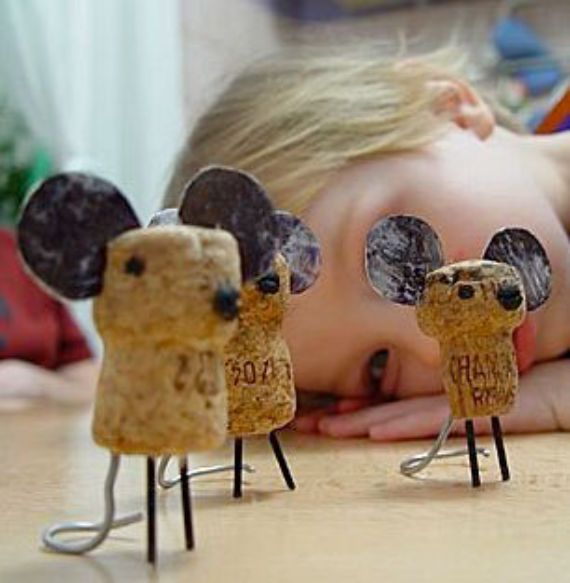 The characteristic shape of corks can be used to create many incredibly cute characters, the last of the animals and figures are countless. A cute little cork mouse is an example.