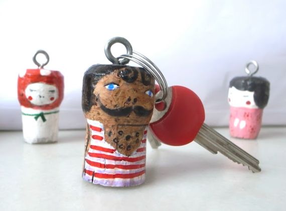 Key-chains and knobs are practical items we use daily.key-rings and knobs made of cork have many advantages beside recycling the corks you’ve gathered. For example; keys afloat if they fall into the water accidentally. Cork knobs are used on jars, doorknob, lass frames and more. The particular shape of the corks makes them reusable creating many characters and items. They are a very simple and fast task.