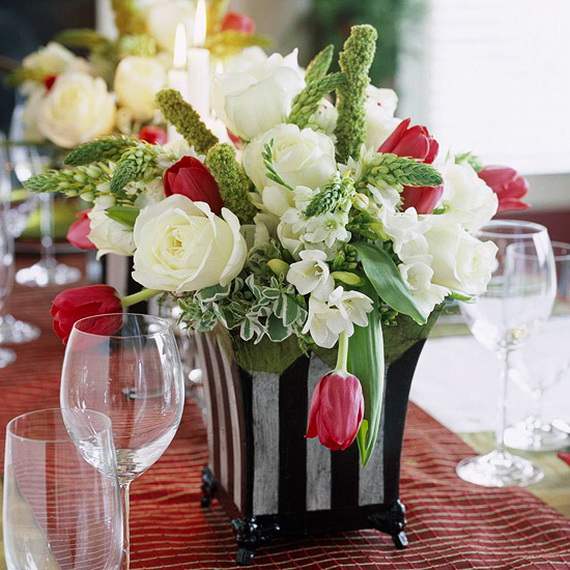It’s hard to go wrong with Christmas flora, but getting it just right isn’t always easy. Before we go on to the various Christmas floral arranging ideas and their many options, there is a lot to keep in mind–like the height of the arrangement, colors, shapes, methods used and in what vase or container to be in. Christmas holiday floral arrangements can include traditional colors of pine green (evergreen), snow white, and heart red. These colors are established in poinsettias and evergreen foliage. Lucky we are Poinsettias are available in a vast array of colors from red to white, pink to burgundy, and with many variations in between. Other wide variety of cut flowers, potted plants, shrub greenery and flowering bulbs are use in Christmas holiday floral arrangements. Whether creating an Outdoor Urn Arrangement, wreath, Christmas swag, gift bouquet, topiaries, lush buffet and centerpieces, jewel-like cocktail table bouquets, or festive mantel displays in traditional or modern styles, you have so many creative options from pintrest to choose from.