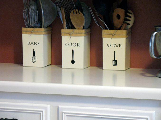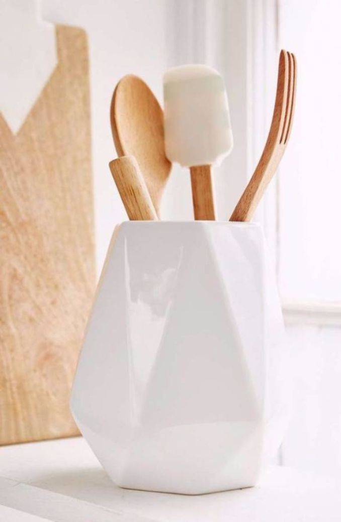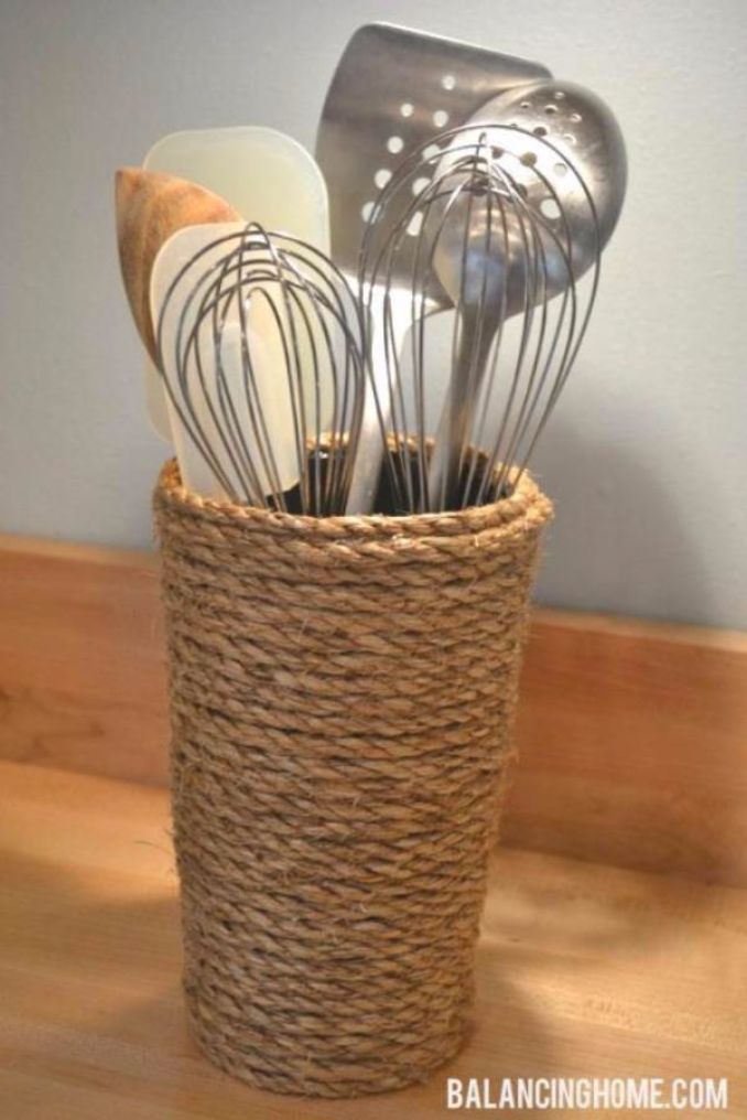 Every member in your family will like to enter the kitchen and invent many different delicious meals. Unless you’re cooking utensils are in one place, they will stop entering the kitchen. This craft will be a cooking utensils holder. You can put in it big spoons, forks, knifes with different sizes and another cooking utensils that you will need in cooking tasks. This craft will be helpful and act like a beautiful decoration to your kitchen. Also it will need a small space and collect many things.