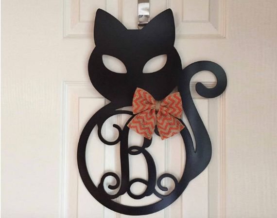 A Black Cat Halloween Wreath makes a wonderful housewarming and very special this Halloween. This black cat is the perfect way for Halloween and is suitable for hanging of a door or a wall or all year long!