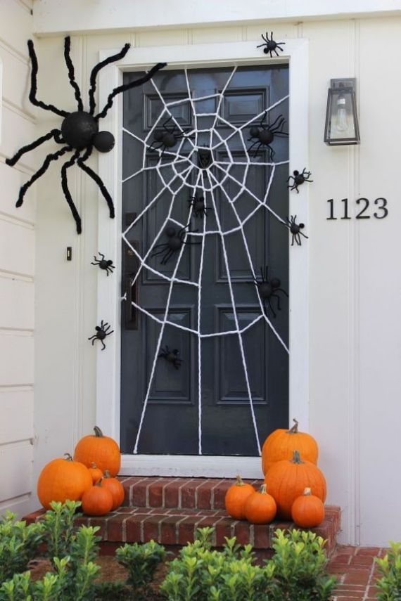 Spiders are always a fun way to trick out your entryway for Halloween. A large spider web to decorate with for Halloween is a spooky idea. It’s amazing how some households’ items like tape and paper can create a big impact. This type of DIY craft, letting the kids create their own design is an amazing way to celebrate Halloween.