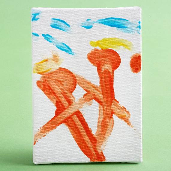 Here’s the ideal gift for the dad who loves grilling delicious meals outdoors, whether it’s for loved ones, or friends. To make this delightful apron use fabric markers or fabric paint and a small paint brush to paint “grill master” and a girl make this canvas apron. Once dry, have kids dip their pinky fingers in brown, red, and yellow paint and press onto apron, just above grill grates, to create flames.