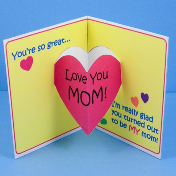 Pop up Mother’s Day cards are best mom cards for moms near and far. An amazing DIY flat card you can make to change your mom’s mood and impress her when it blooms into a three-dimensional arrangement. It shows your affection with a heartfelt delivered with a strong emotional impact. This project may seem complicated, but it is a great suggestion if you are looking for easy and really simple idea about craft for kids and grown up too. Follow the instructions here, see how easy a love pop Mother’s Day cards is to create. All you need is some snippets of paper and cleverly tape to place the pop inside the card. You can create many designs; love pop Mother’s Day cards, pop up flower card for Mother’s Day which is much more unexpected than a vase of roses, pop up heart card, pop up letters and many more gorgeous greeting cards.