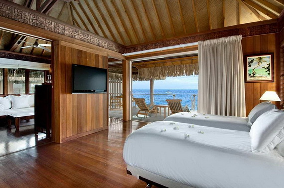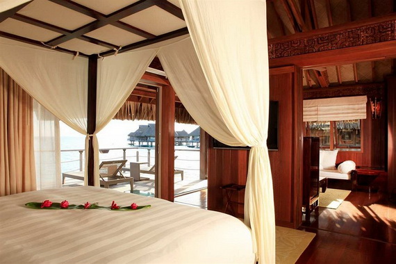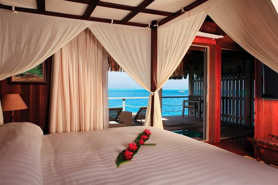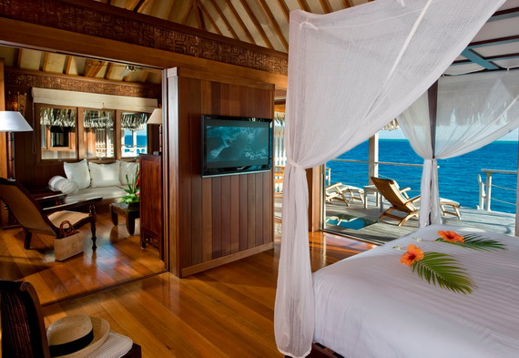 And from all the resorts there I suggest Hilton Bora Bora Nui Resort & spa. This hotel is an idyllic retreat. The resort is ten minutes from Vaitape village. You may go there by an airplane or private helicopter to Bora Bora then arrive to the resort by a private hotel boat. You will enjoy savor panoramic views over the lagoon and breeze cool smell of the ocean. Watch the sunset with cocktails from a Polynesian-style beach bar and you may have a tan. Also having a dinner on Mediterranean cuisine make you relaxed. You may work out at the fitness center and try beauty treatments at the spa.