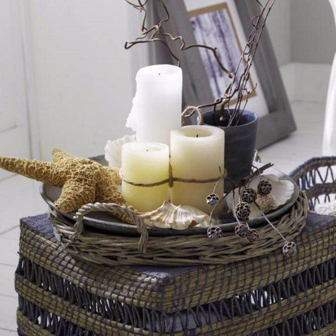 Simple marine theme summer candle centerpiece ideas