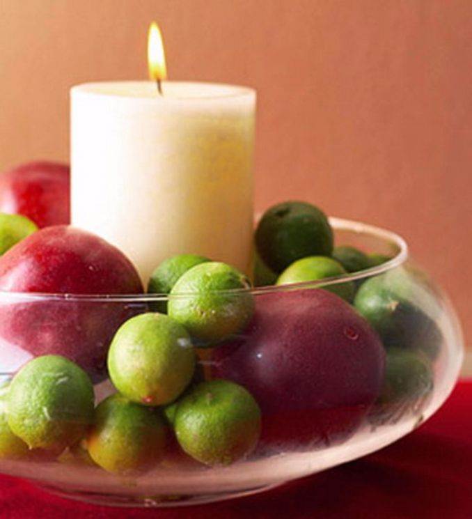 Generally taking, fruit is, for the most part, less expensive than using flowers, yet it has its Sharm when added to any centerpiece. Visually it can totally transform a boring old table into something worthy. Summer colorful fruits are a great addition to any candle centerpiece. Both Pillar candles and floating candles are perfect for this kind of decoration. Fruits in their many and varied forms, brightly colored, deliciously flavored fruits can be a great inspiration for summery look to any décor.