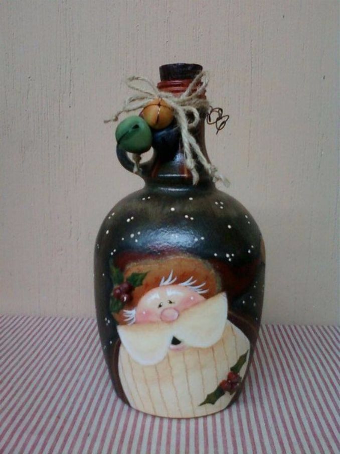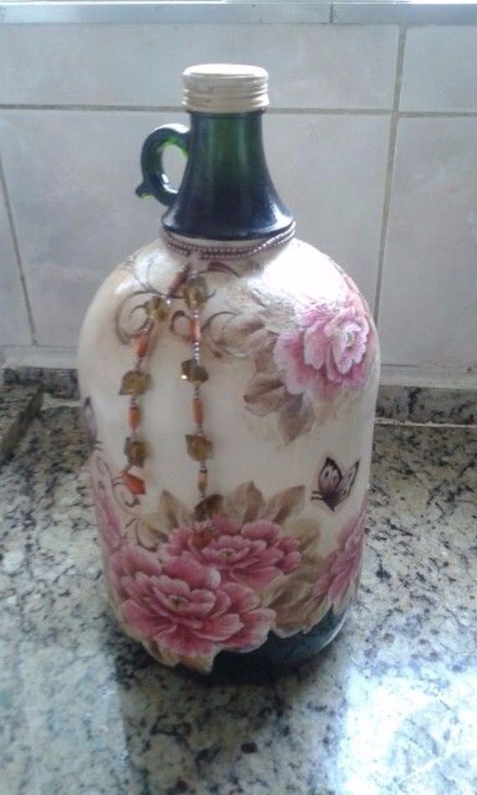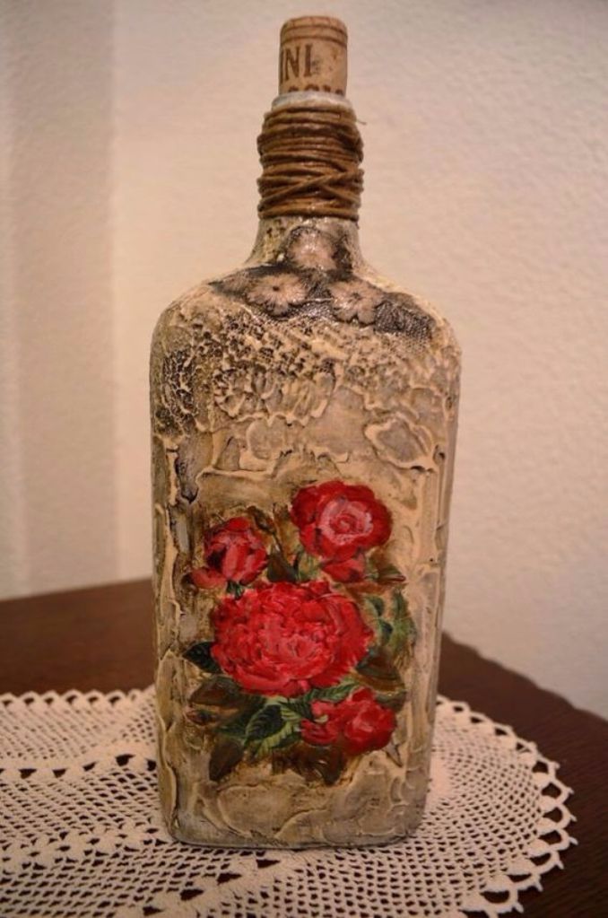 Fourth, paint the glass bottle with multi colors using the paint and the brush. Don’t forget to put old newspapers bellow the bottle while painting.