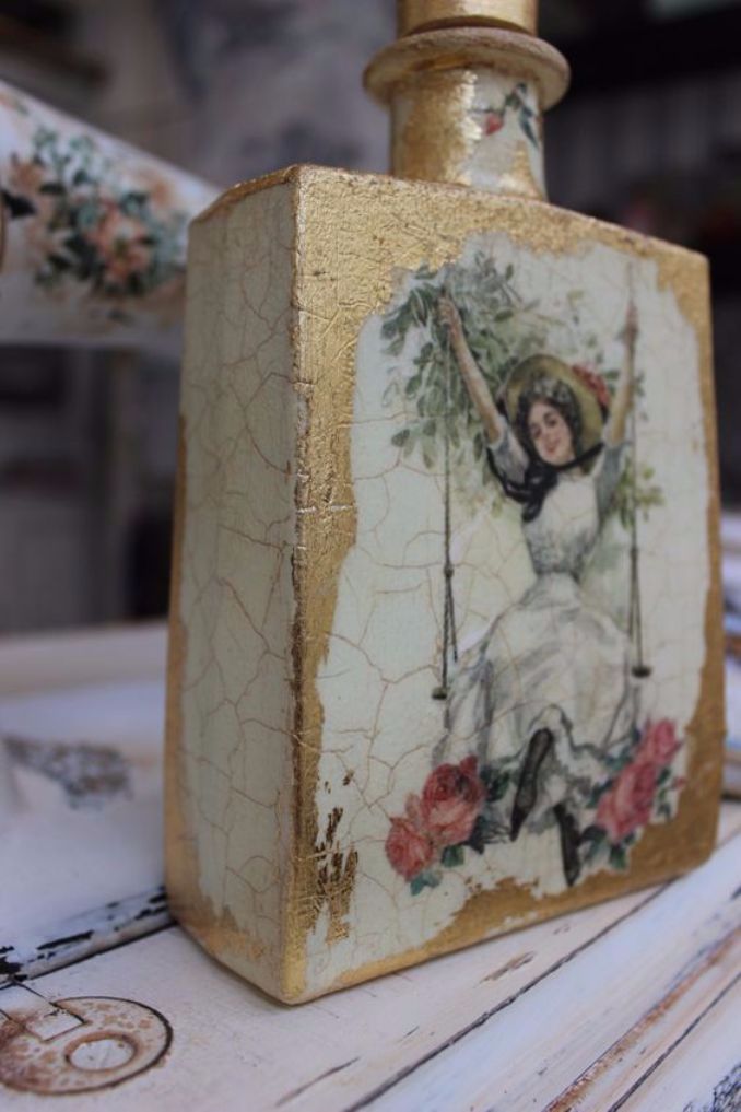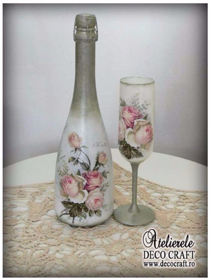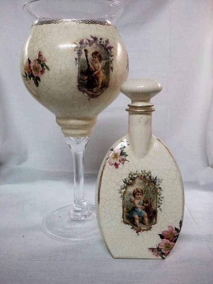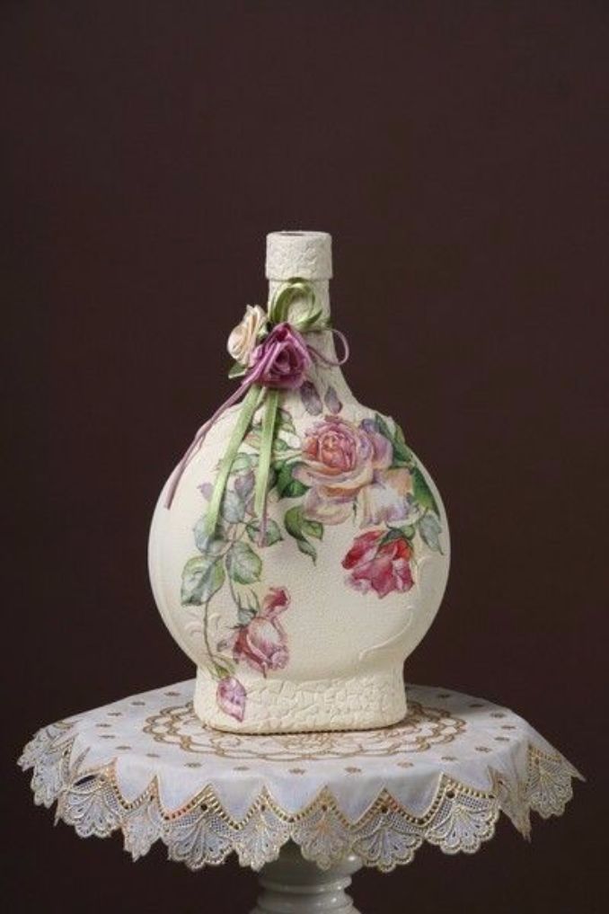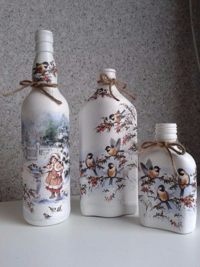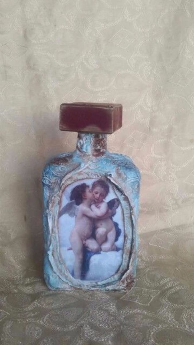 Third, put the evacuated picture on the glued bottle and stick it with a removable glue stick. If you need to adjust it on corners use the scissor to help it being folded on the glass.