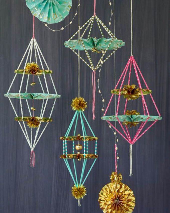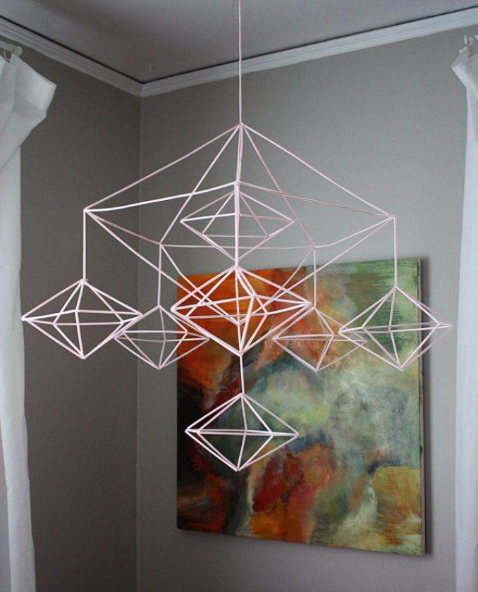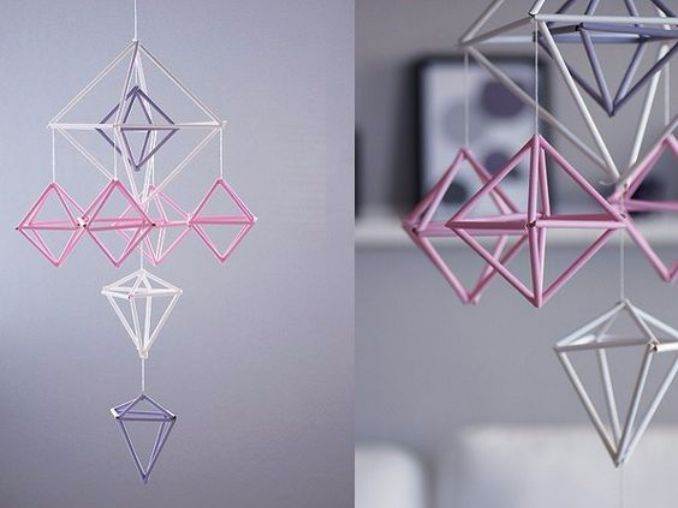 The first craft is Drinking Straw Mobile. Get drinking straws, paper clips, construction papers with many colors and Scissors. In the beginning slip a paper clip on the middle of a straw to form the basic unit of the mobile. Then, make the same step near each end, after that make many similar units in the form of a chain. Be careful that the mobile be balanced by moving the paper clips over. Finally, cut the colored construction papers into stars, sun and moons in the shape of croissant. Hang them at the terminals of the mobile that it will look great when you hang it from the ceiling.