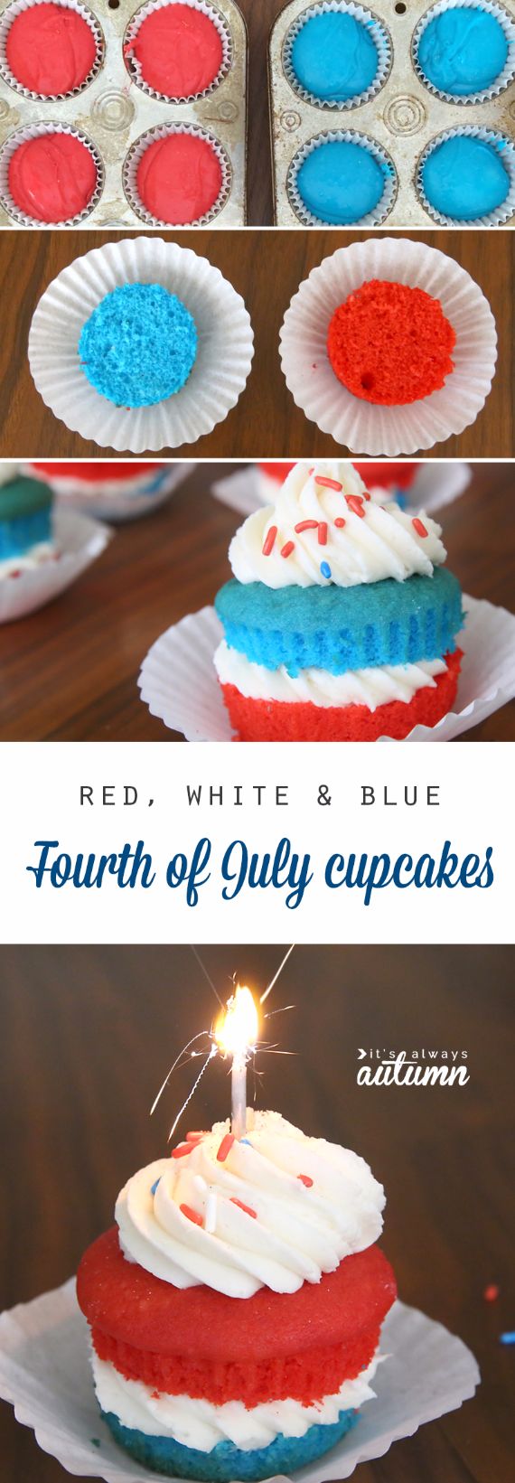 Red, White and Blue Cupcakes;