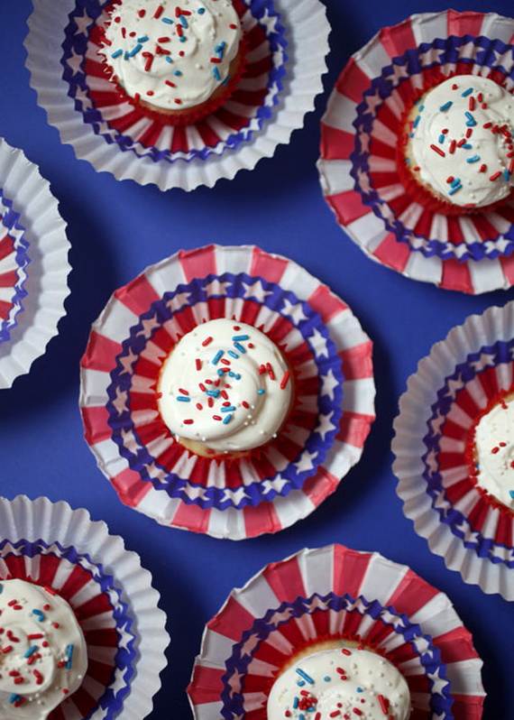 Create a fun treat using 4th of July cupcake liners for Independence Day for the 4th of July holiday. Have a fun time with your kids putting together this baking project as well as creating this recipe for Patriotic Vanilla Confetti Cupcakes. This Independence Day Cupcakes are sure to put a smile on everyone’s face from young to old.