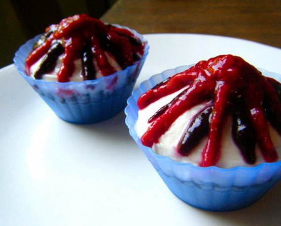 These chocolate cupcakes decorated with blue fostering will bring on a taste of nostalgia with their rich chocolaty and meringue filling. These Patriotic chocolate cupcakes definitely won’t disappoint.