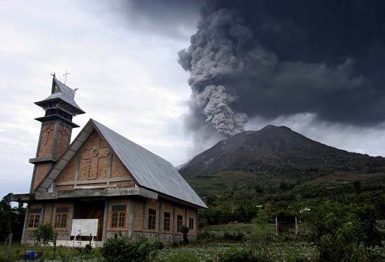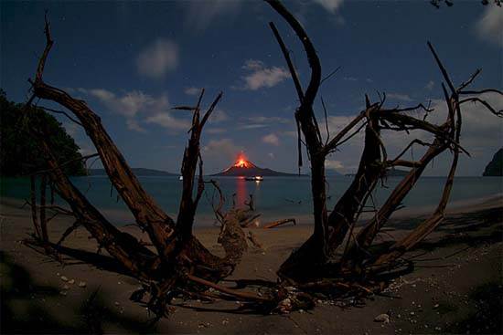 The 1883 volcanic eruption of Krakatau Indonesia ejected over twenty-five cubic kilometers of ash, pumice, and rock, and generation of the loudest sound ever heard .Being heard nearly 3,000 miles from its point of origin. Shocking waves from the explosion was recorded on barographs around the globe. Before the explosion, this isle had three volcanic cones, two of which are considered to be twin volcanoes, though these two (Perbuwatan and Danan volcanoes) were destroyed by the 1883 eruption. The first historical major eruption occurred in the pre historical period (416 AD) as documented in the ancient Javanese book “Pustaka Raja”. The height of ancient Krakatau was estimated 2,000 meters and radius of 9 kms. The volcano eruptions have built a new island in the same location after resting for forty-four years, on December 1927, named Anak Krakatau (which is Indonesian for “Child of Krakatoa”). This new island has reached approx 200 m above sea level with the diameter of 2 kilometres. Within this area is the UNESCO World Heritage site, the Ujung Kulon National Park. The park is home to many flora and fauna. 57 species of flora found in the park are considered to be rare. Krakatoa Island is currently among three destination in Indonesia that has been qualified in the New 7 Wonders of Nature campaign held by the New 7 Wonders Foundation (two other candidates is Lake Toba and and Komodo National Park).
