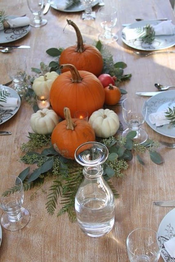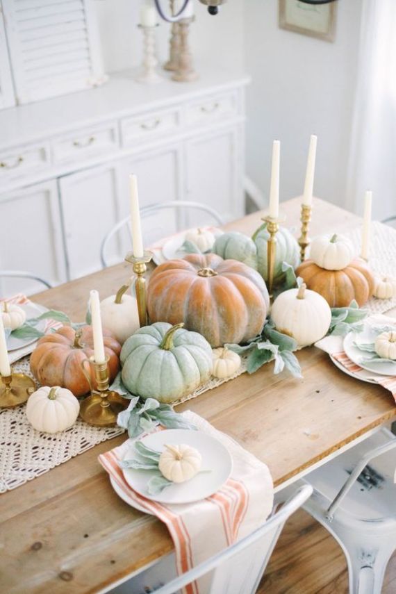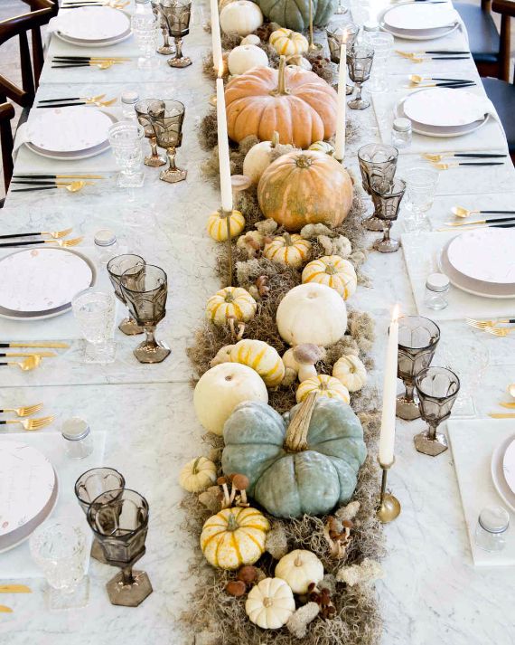Pumpkins as a table runner an offer a subtle alternative to a traditional table runner Get pumpkins of all the colors, shapes and textures and transform them into a table runner to accommodate them on your table. You can stack them, line them up in line, pile them up, or place them on plates with the fall vibes, Combine pumpkin sizes for creativity and for a touch of fall flair.