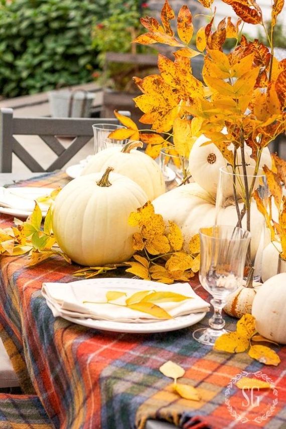 Remember that not only pumpkins are autumnal. Apples, pears and pomegranates are autumnal fruits of the season and you can place them as centerpieces and place settings on your Fall table as decoration. Having thanksgiving table decorations with fruits makes your table abundant and rich for fall entertaining or your Thanksgiving feast.