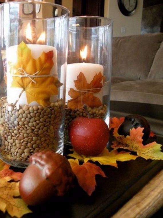 One of the best ways to decorate your home in autumn is to use fallen dry leaves in case If you don’t want to use pumpkins. Or give a feel in contact with nature use a mixture of dried leaves and pumpkins as a table runner.