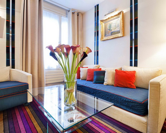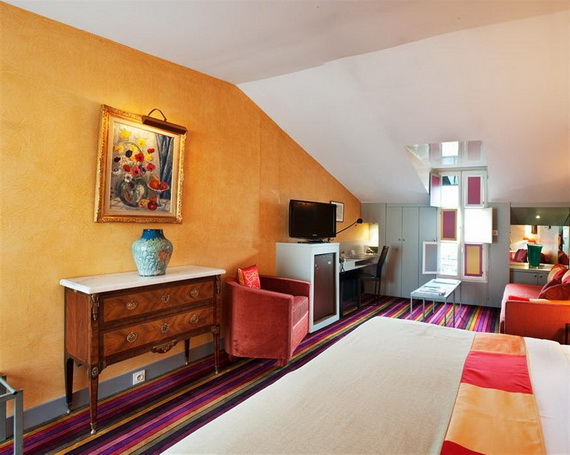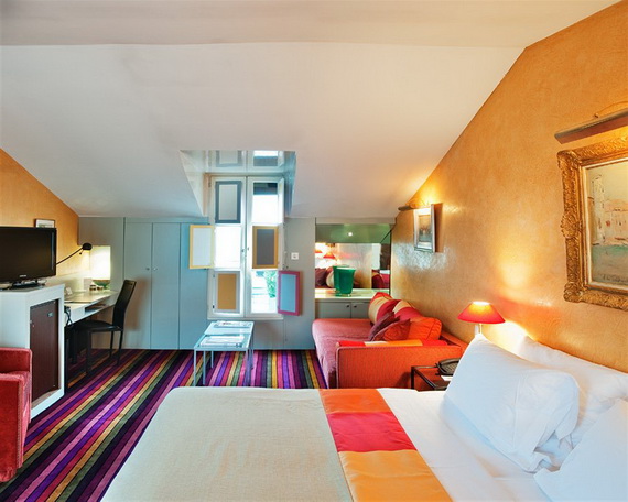The hotel features different types of rooms to satisfy all people and their needs, such as two double disjoint, Triple Room, Standard Single Room, Classic Double Room, Superior double or twin, Junior Suite and Prestige Suite. All rooms have air-conditioned with satellite TV and a mini bar. Some rooms feature a private terrace or balcony and views of the garden Tuileries. All rooms are decorated individually with bright colors.