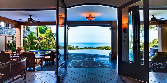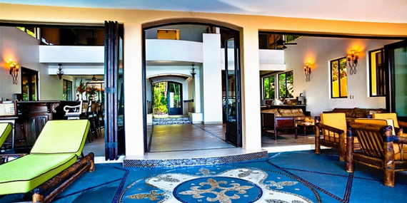 About the main entrance, a pair of large doors welcomes you to your luxurious home. The Main House is the main part of the villa because it is the first place welcomes the guests. Because we believe that family vacation memories should be filled with extraordinary moments, The Main House provides a large sunken lounge to gather to enjoy time together and relaxing. It has an open floor plan. From every room in the Main House you can see spectacular sunsets on the Pacific horizon. It includes a hand crafted wood bar where guests can enjoy cold tropical drinks, airy indoor and outdoor dining areas with Pacific Ocean views. You may enjoy a romantic dinner. There are ceiling fans throughout the Main House and patio areas. Because Mareas is at 1,000 ft. elevation there are ocean breezes that create a cool comfortable climate. Wide away of services and amenities of Mareas Villas that will enable you to create your own custom and memorable experience with your family or friends.