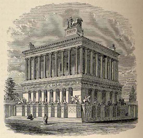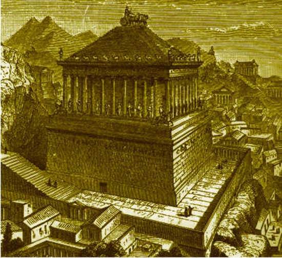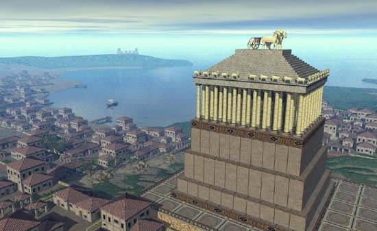 The Mausoleum at Halicarnassus or Tomb of Mausolus Greek, was a tomb built between 353 and 350 BC at Halicarnassus (present Bodrum, Turkey) for Mausolus, a satrap in the Persian Empire, and Artemisia II of Caria, his wife and sister, (as was the tradition then; to keep power and wealth strictly within the family) . Was considered by the ancient Greeks one of the Seven Wonders of the World. The tomb of Mausolus was commissioned by his wife and erected on a hill with a view of the city.