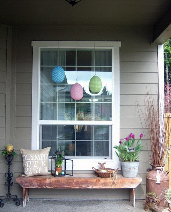 Spring is the perfect time of year to decorate your home whether inside or out. Easter decoration atmosphere in your own home is a number one topic for everyone. So Get your house ready for your Easter egg hunt by hanging pastel spring and Easter decorations outside your home and an Easter decoration on your door so that everyone knows where the party is. On Easter day do not neglect the entrance and garden area, make them inviting with excellent ideas for outdoor Easter decorations. Outdoor Easter decorations do not necessarily have to be extensive and lavish. Make colorful spring atmosphere that reflects the light and life and let spring brings cheerful mood, light and joy into your day and coming ones too. Because spring festival is a celebration of the renewal of nature use natural materials – arrange flowers, moss, twigs, and decorate with homemade decorations. Beautiful and creative outdoor Easter decorations bring the refreshing atmosphere of Easter in all corners of your home promising a peaceful, comfortable and most of all – cheerful holiday.