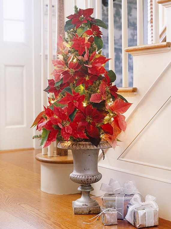 Poinsettias has warm presence adorn every corner of the house, can be a nice centerpiece or an original Christmas tree providing a beautifully designed complement to the timeless appeal.