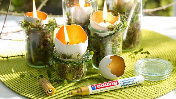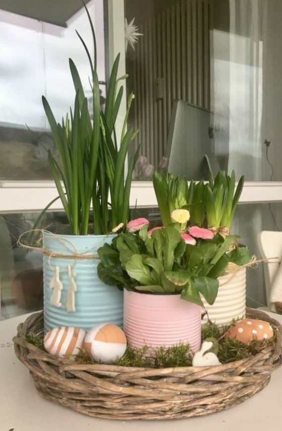 Reduce, reuse, recycle. are simple DIY crafts your window sill decoration. Cake and muffin tins as well as egg cups, tin cans and a number of canning jars are found in our home, can be recycled to give your Easter decorations an additional vintage charm.