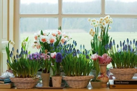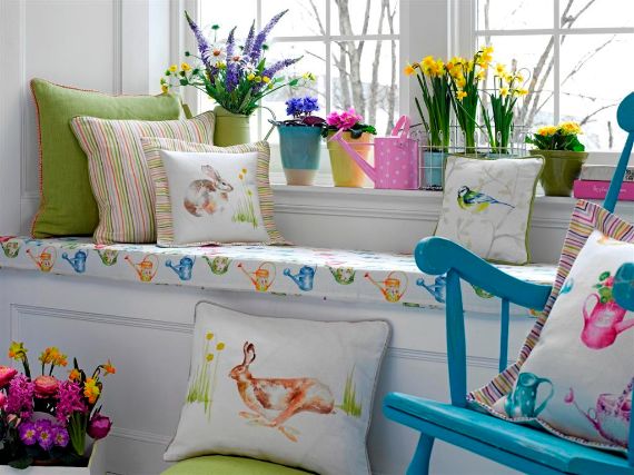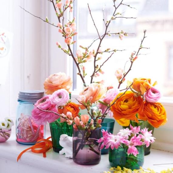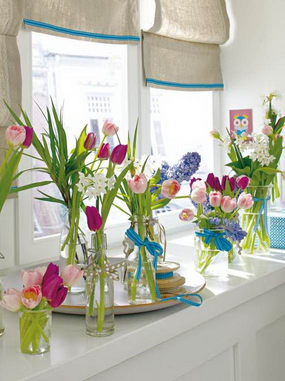 Flowery window sill decoration are always suitable creative window display as great as table decoration for Easter.