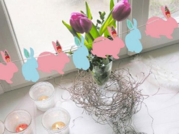 Bunny Garland for Easter Window Decor Bunny Garland is beautiful and creative window décor to make. Paper garland are all you need for this original and fun Easter decoration idea. Easter Window Decor Bunny Garland idea is cute and simple, it works for both kids and adults’ beginners and skilled. Your window will be so lovely, the Easter bunny himself will approve.