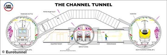 The first ever proposal for a tunnel between the UK and France was in 1802. But British political and press pressure over compromised national security stalled attempts to construct a tunnel. The need and the invention of railways made the project more practical. In the making for two centuries the combined efforts of the English and the French made this dream a reality and a modern wonder. In December 1987 ,Tunneling began and was officially opened for travelers by the Queen and France’s then President Mitterrand on 6 May, 1994. The Channel Tunnel has 3 actual tunnels, two Running Tunnels for running trains (one for Eurostar, one for Eurotunnel) and the other is the service tunnel that takes care of maintenance of Chunnel, which is slightly smaller than the other two.The only one of its kind in the world – also acts as a “safe haven” maintained at a higher air pressure and thus remaining free from smoke and fumes. The two main tunnels that are in place are around 30 m apart. And there are cross passages every 375 metres to link them to the service tunnel. The Channel Tunnel is the largest undersea tunnels in the world, as the amount under the sea is 38km. 50 meters below the seabed of the English Channel . Since 1994, 3 fires large enough to necessitate its closure. The first was in 1996, with the second in 2000 and finally the third in 2008. Nobody has been killed in any of those fires. Britain and France have coordinated emergency plans for most contingencies–but they have caused extensive damage to the Chunnel facilities. The Channel Tunnel remains a key link between the UK and France and will continue to do so for many years.