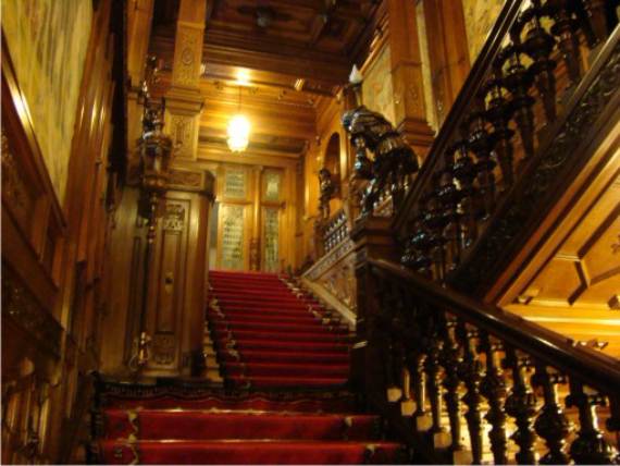 The Entrance Hall is magnificent, it is the most sumptuous reception hall of the entire castle, was finished completely in 1911 by the architect Karel Liman. It spreads over three floors. Walls are dressed in exquisitely carved walnut and exotic timbers woodwork, covered with bas-reliefs and statuettes.