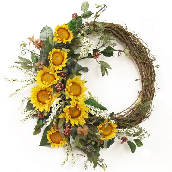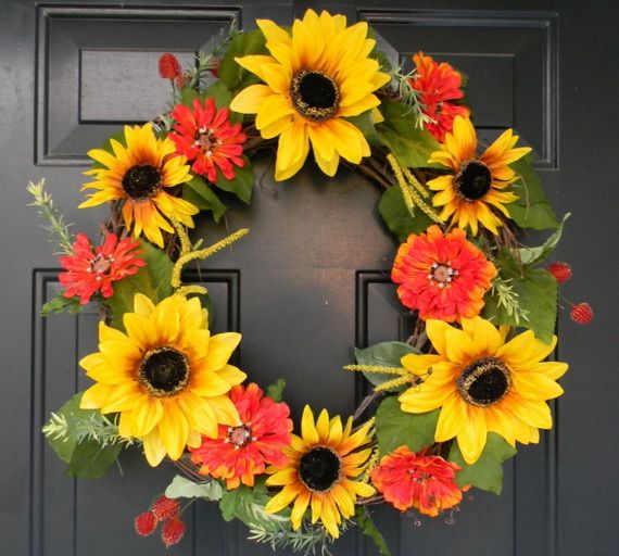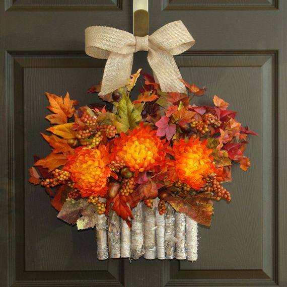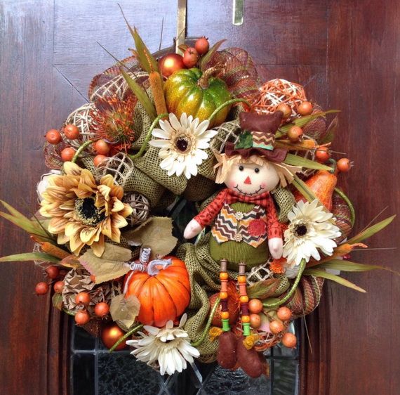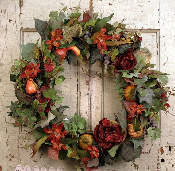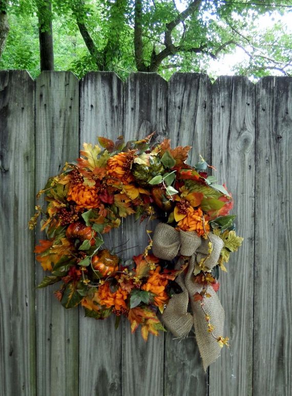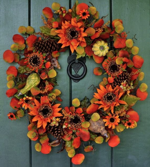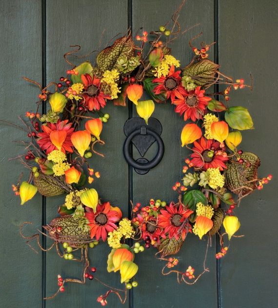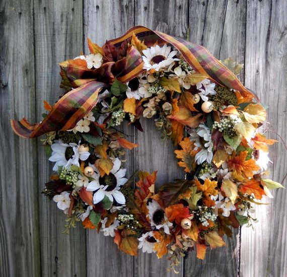 Autumn Wreaths come in a variety of colors and materials which helps you to create a beautifully festive atmosphere. Wreaths are usually made with green or/and dry tree leaves, but in this collection, many other choices are available such as fresh or dried flowers, artificial flowers and branches, daisies, sunflowers, dahlias, berry branches, pine cones, etc. You can have a Halloween-themed mini-pumpkin, or represent Thanksgiving motifs they are all inspirations for the coming occasions too. We gathered for you some wreaths that people make to inspire you create your own.