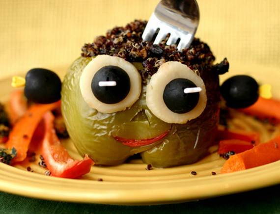 Continuing within the same theme give children healthier or more nutritious options of food or snacks. From yummy chocolate-dipped owl pretzels and finger foods to jack-o’-lantern cookies and dessert ideas.