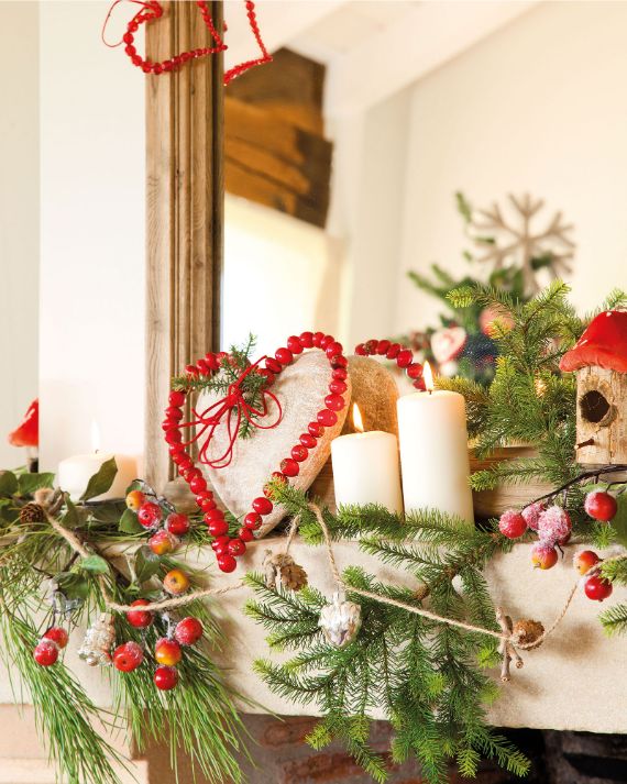 Christmas Holiday decorations had passed down from one generation to the next. Decorating for Christmas does not have to be an ornate decoration as grandmothers’ era doesn’t fit any more…The beauty is found in simplicity. While one of the traditional colors of Christmas are evergreen natural evergreen garland on the fireplace creates a Christmas atmosphere and still having the traditional Christmas theme on.