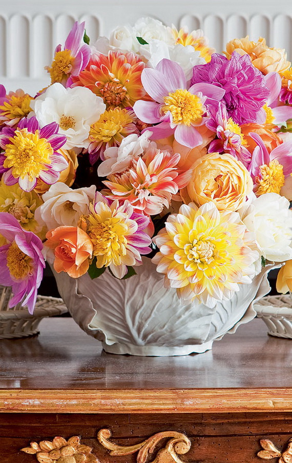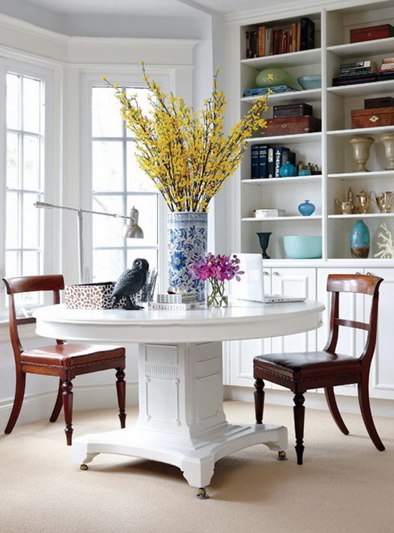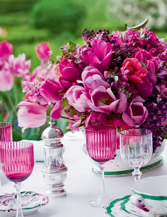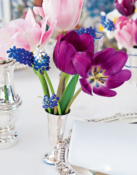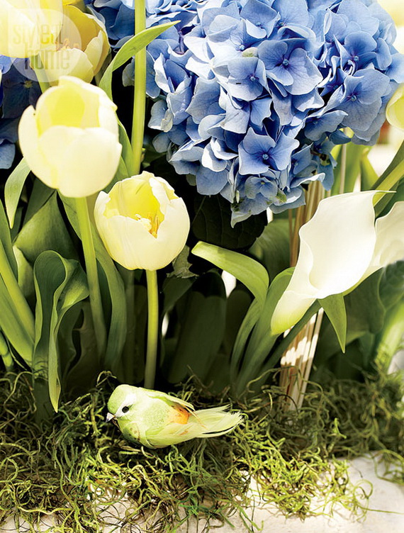 Decorating your home with cheerful spring flowers simply will add pleasant dressing to the space, this age-old custom, will balance the energy (gains all positive energies and drive away any negative vibes that exist and create a sense of harmony in every room in the home because placing fresh flowers is considered a superb way to attract strength and physical energy. To enjoy the good energy in your home and to celebrate spring and Easter time with; create multi-colored flower arrangement for a playful focal point, or group a single color together for a more subtle look. Get inspired by this season’s hottest stylish Spring and Easter 2014 collection inspiration on style at home for establishing harmony and beautifying your home.