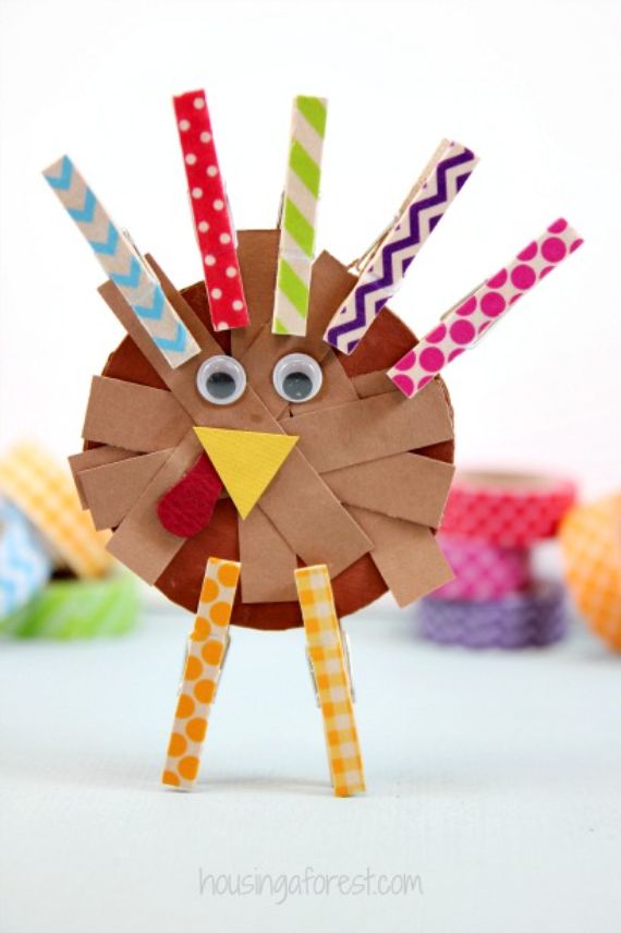 This is another favorite Thanksgiving Turkey Craft for Kids which is entertaining relaxing and seriously adorable! You only need colored paper, scissors and glue to make a turkey out.
