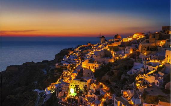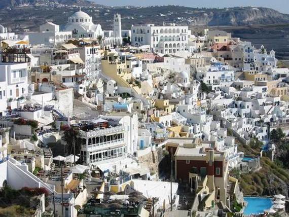 Santorini Island and the other small group of Greek Islands was the site of one of the largest volcanic eruptions in history and what remain today are a submerged volcano and a caldera (volcano cauldron). Santorini itself was formed out of the lava from the volcanic eruption in 1660 BC; it is the only inhabited Caldera in the world. Santorini has famous villages like Fira the capital , Imerovigli or Oia, the towns on the top cliff of the caldera, mostly know around the world for their spectacular sunset. The volcanic colored rocks of the cliff are spectacular offering fantastic views of the Aegean Sea and submerged volcano. The weather of Santorini is the same as most of the Cyclades Islands. It is hot sunny in summer and dry winters. The weather is nice and sunny from April till September. The beaches of Santorini are of special geographical features, Santorini have dark-colored beaches while specifically popular are Perissa, Kamari and Perivolos ideal for scuba diving amidst the caves, reefs and walls.