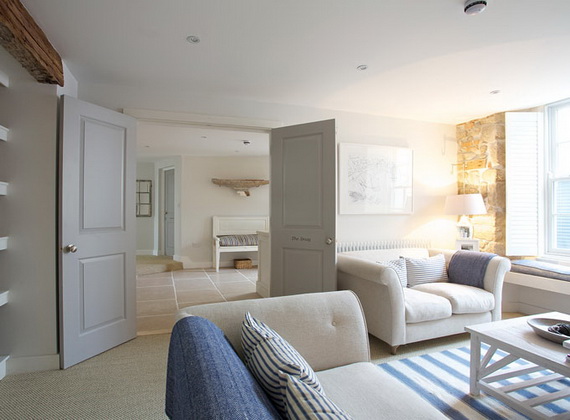 Small gorgeous Tide House Hotel in Cornwall, in south-west coast of England is the oldest hotel in St Ives which dates back to 1540, has been lovingly restored as a luxury coastal bolt-hole. Interiorly the Tide House was designed by Suzy Fairfield, an interior Designer from London. Suzy’s skills flooded the space with light, chalky color palette, beautiful warm and tactile luxury furnishings full of coastal details turning this medieval building into one of the loveliest small hotels that everything was made to be comfortable and extremely stylish without being overwhelming. The Tide House is both family-friendly and a romantic retreat with just 6 rooms all named after lighthouses in south-west Cornwall. All six bedrooms are nautically chic beside flexible spaces for families and two family suites all are individually designed, with a simple understated elegance. This cozy stone guest house rooted in the distant 16th century is a few meters from the sea with fabulous harbor views in a small resort village. The Tide House was created as a home from home where people come to relax determined by an interior marine life decoration style that makes you feel staying somewhere special. The Tide House is like staying over at your extremely sophisticated British relatives’ home but with all of the perks of a hotel. Simple and very cozy!