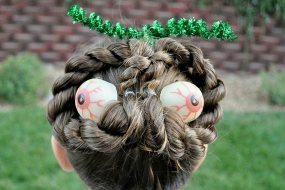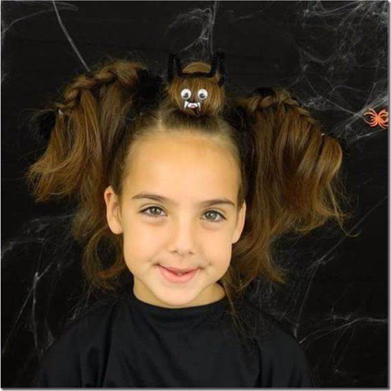 There are plenty of options for non-conventional ideas without any permanent changes. Your kids can be this crazy with her/his hairstyle which are of a perfect look. Crazy ideas are great just for fun Halloween celebration with the finishing off look that are just awesome and cute for the night. Girls usually have a rich desire for fashion and to tryout a different look more than boys and seeing themselves with a different style that is the same for these creepy, wacky Halloween night- a day of a festive spirit.