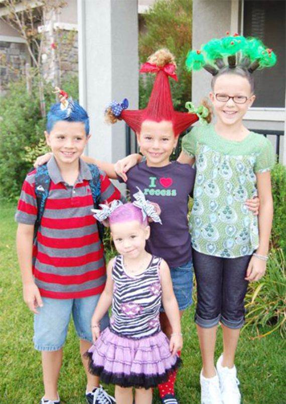 Creative parents have a big chance to help their children to focus on the details showing the best ideas for crazy hair on their kids. Halloween is the perfect day opportunity to allows for creativity and allow you to go more spooky. The more you create, the more you get …The wilder and the better. Hair is at eye level the first thing you view then the costume details start next.