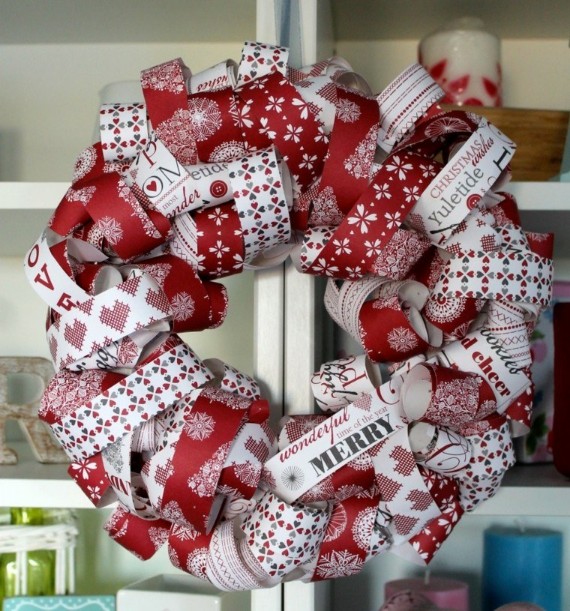 A Christmas wreath made of paper strips and of classic beautiful colors with inspiring decorations. Christmas wreath made of good selection of geometries designs that makes the Christmas season so special. This Christmas paper wreath is perfect anywhere; front door, window, foyer, above the mantle and so much more.