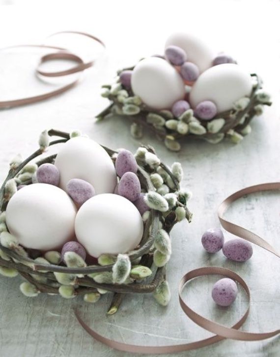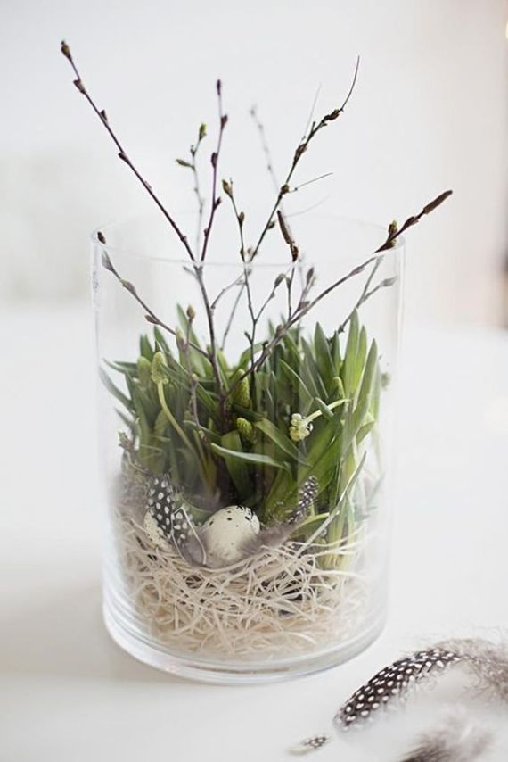 Easter is always a spring holiday and nature has its role in Easter décor. So, DIY Easter decor with fresh spring plants as flowers and twigs of willow branches can also be a great element of Easter decor.
