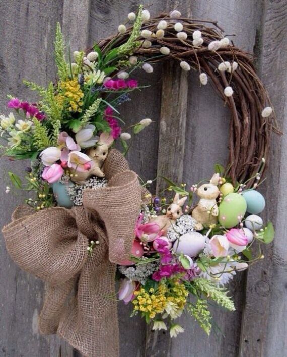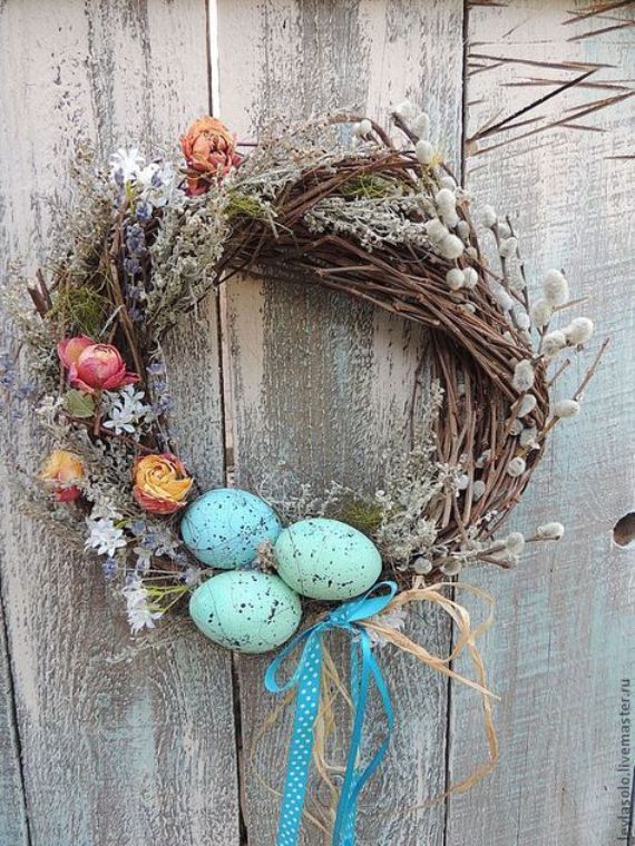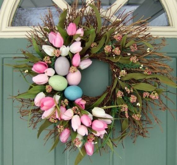 Easter wreath decoration became popular recently. The Easter wreath don’t seem too unusual, as we are familiar with Christmas wreath on doors internally and front doors. The only difference is that it consists of Easter symbols. Wreaths can be placed on front doors to welcome your guests, interior doors, mantel, or simply on door knobs or as an Easter table centerpiece and not only the festive table, but also the backs of chairs.
