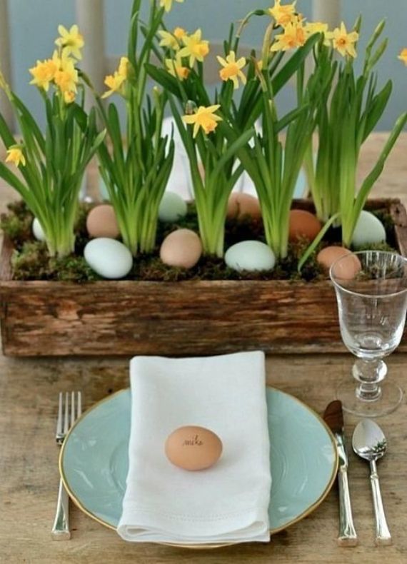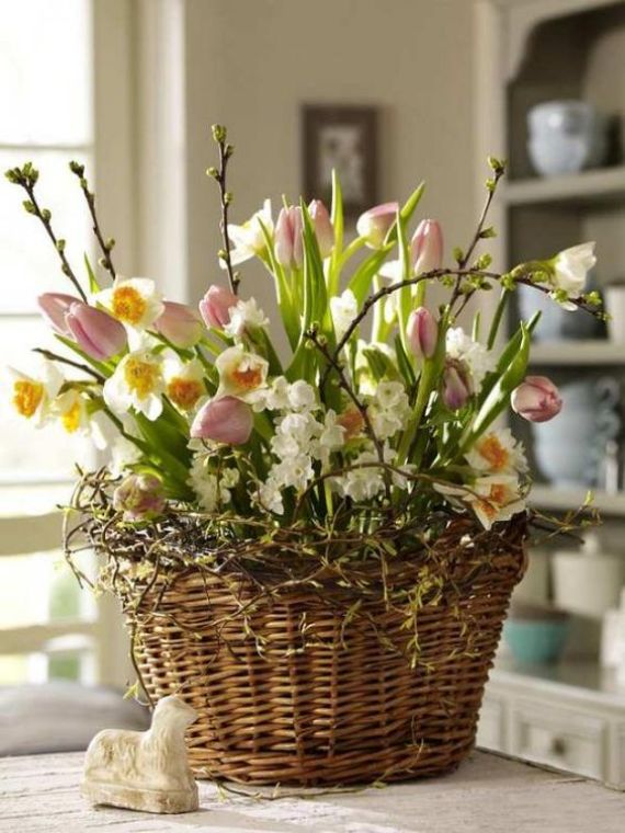 Flowers are the best decoration for any holiday they are never too many. Nothing says “new” like fresh spring flowers arrangements. With spring, flowers have delicate primroses that will instantly fill the house with a festive mood. Baskets with seasonal blooms are a wonderful addition to the Easter table. They will fill the house with a festive mood creating a springy atmosphere. Place them anywhere… on the table, all throughout the house, wherever you want. Flowers arrangements are especially relevant in Easter decor obsessing over all decor-related elements.